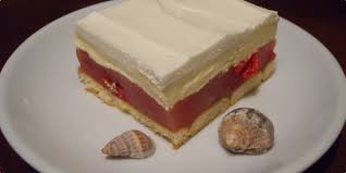 Dodati višnje i dobro promiješati te ih ravnomjerno rasporediti na kekse koje smo posložili u jedan sloj na dno tepsije .